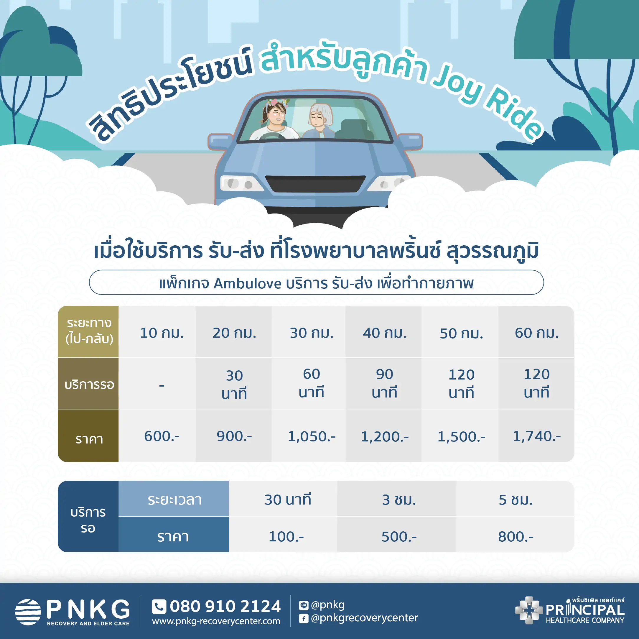 – ราคาประมาณ 900-1500 บาท/ครั้ง ขึ้นอยู่กับระยะทาง (รวมค่ามิเตอร์แล้วและส่วนลดพิเศษกับทางศูนย์ PNKGแล้ว)
